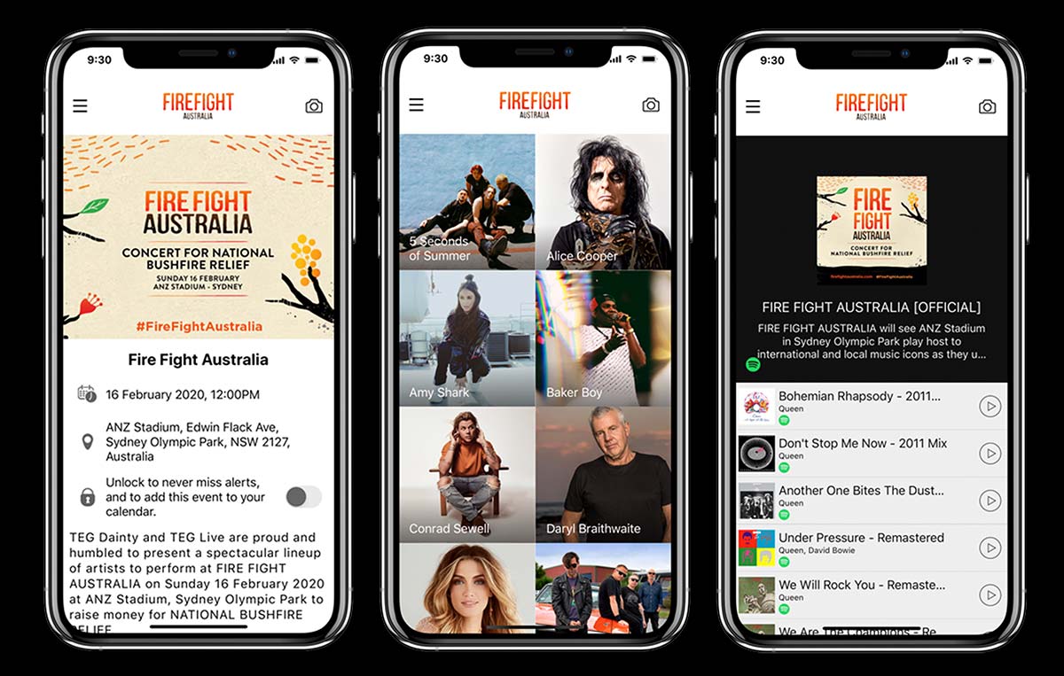 Concert ticket profits and contributions through Ticketek will go to key organisations providing vital short, medium & long term “Rescue”, “Relief & Recovery” and “Rehabilitation” assistance in fire affected areas.